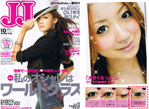 JJ10月号、カリスマ読者モデルJAMの”オクジュン"こと奥田順子さんのアイメイク特集で私物のドレスラッシュを紹介していただきました。