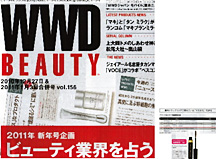 美容業界紙 WWD BEAUTY 12月27日発売号「都内ドラッグストアで売れてるマスカラランキング」で、ドレスマスカラが3位にランクインし、紹介されました。